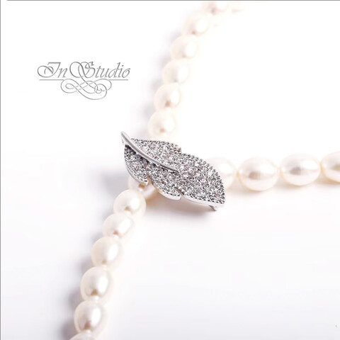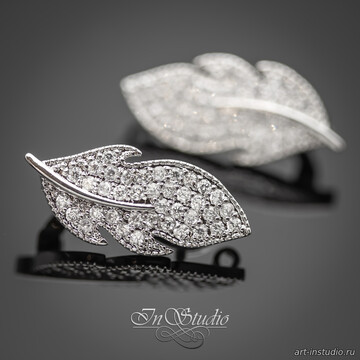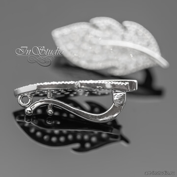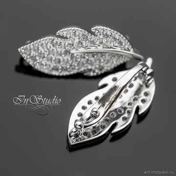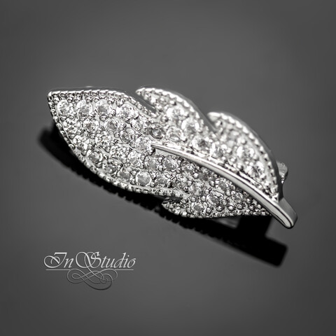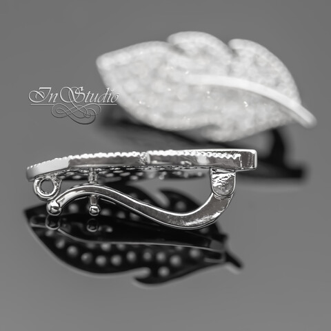 Бейл замок разъемный Листик с фианитами родиевое покрытие