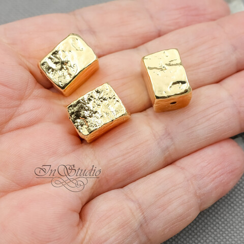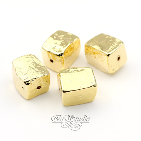 Бусина прямоугольная мятая 14х11 мм фриформ позолоченная