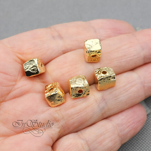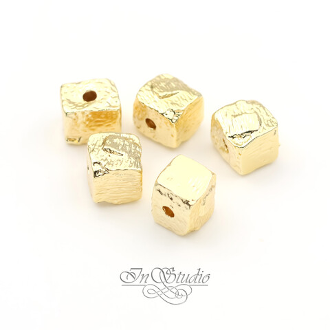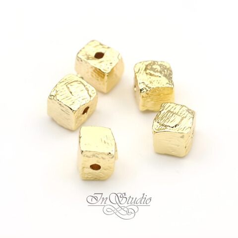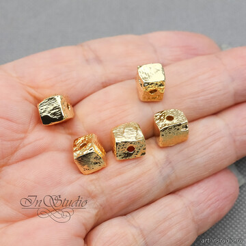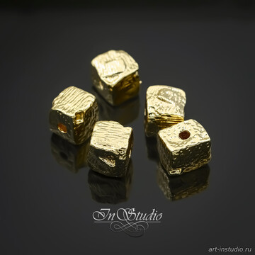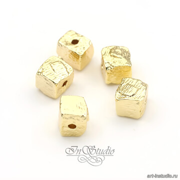 Бусина квадратная мятая 8 мм фриформ позолоченная
