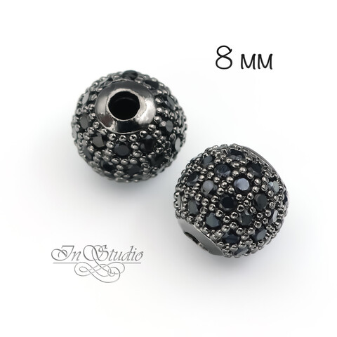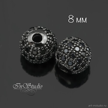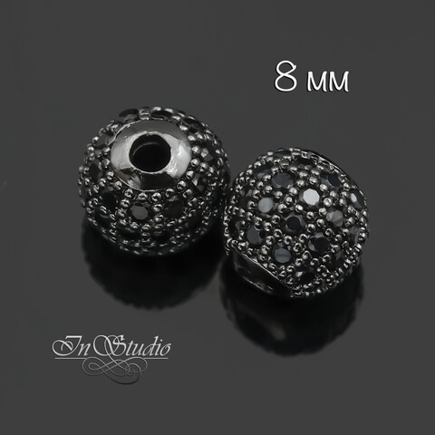 Бусина декоративная с фианитами 6 мм шар черненое родиевое покрытие
