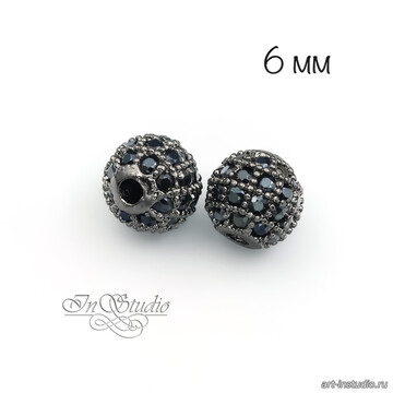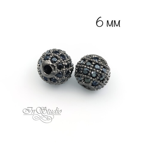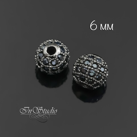 Бусина с фианитами 6 мм шар черненое родиевое покрытие