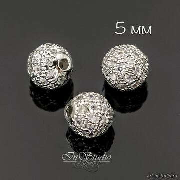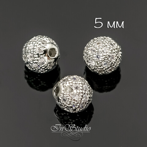 Бусина с фианитами 5 мм шарик родиевое покрытие