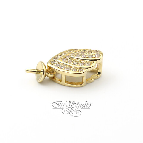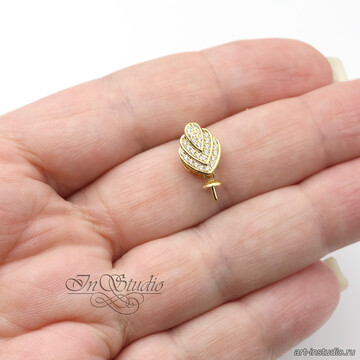 В нижней части - штифт с шапочкой (чашечкой), предназначенный для вклейки жемчужины или бусины.