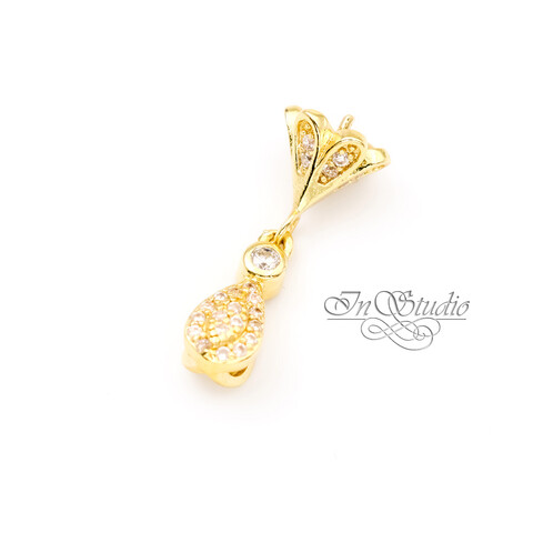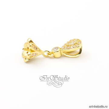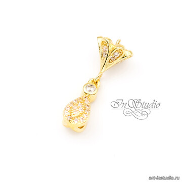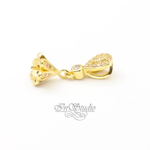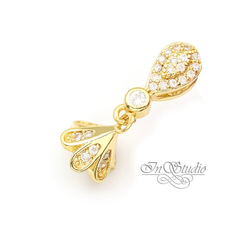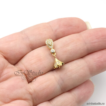 Бейл под вклейку со штифтом КОЛОКОЛЬЧИК позолота с фианитами