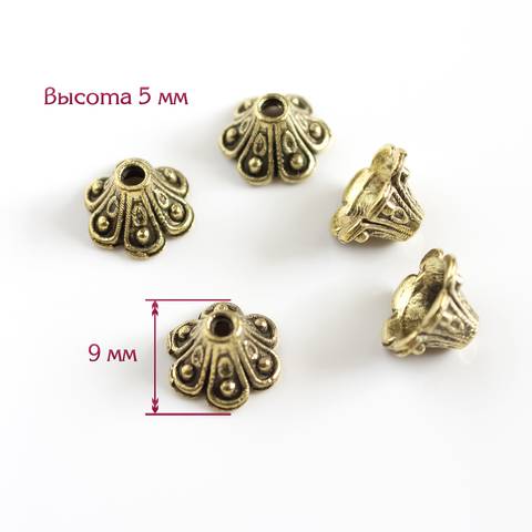 Шапочка конус для бусин Колокольчик античное золото - Ш337