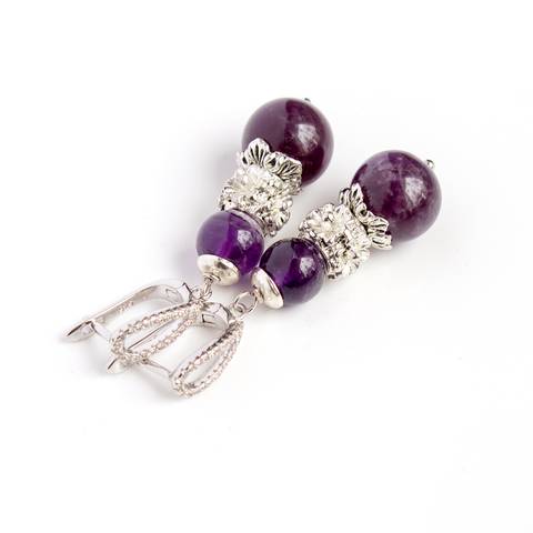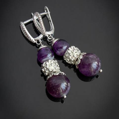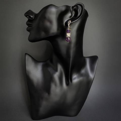 Стильные и элегантные серьги Песня Сирены из натурального аметиста насыщенного сиреневого цвета.